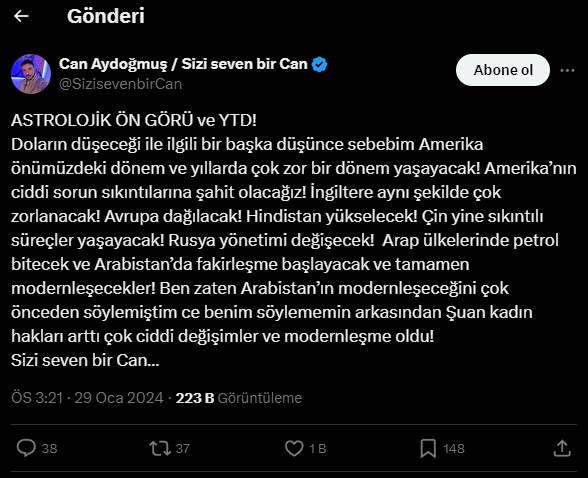 Dünya hakkında yorumlar… 9 Nisan 2025 9 Nisan 2025 By Can Aydoğmuş ASTROLOJİ, Doğru Tahminler, Genel 0 Comment